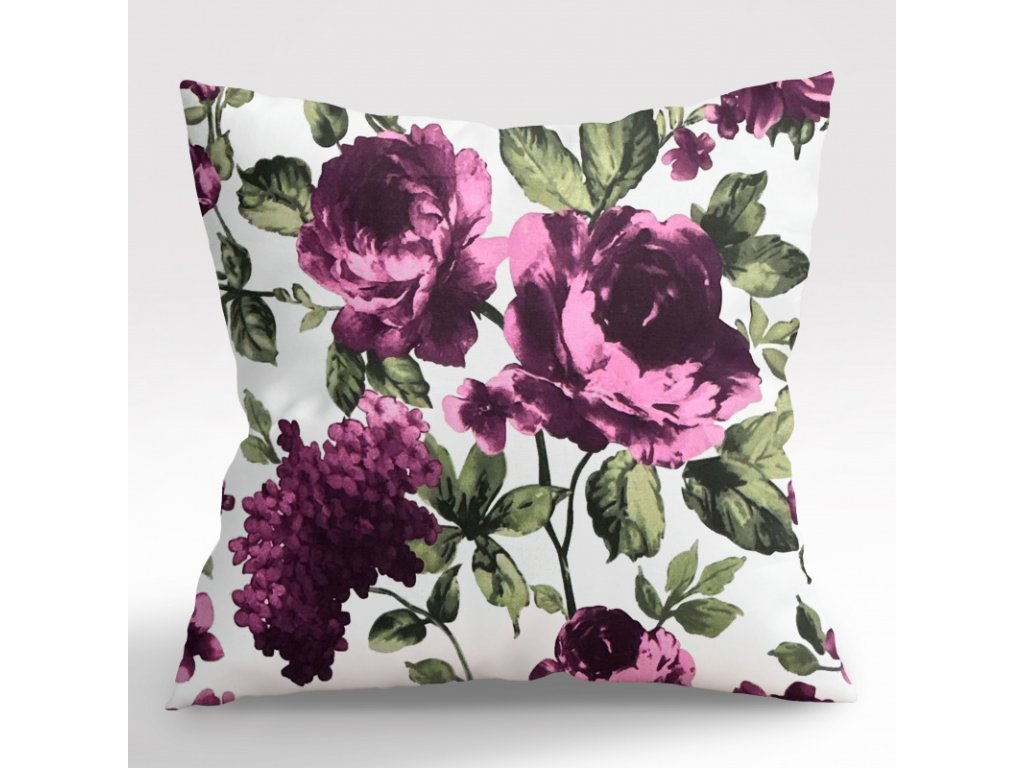 #Ervi povlak na polštář bavlněný - fialové hortenzie a pivoňky 40 x 40 cm