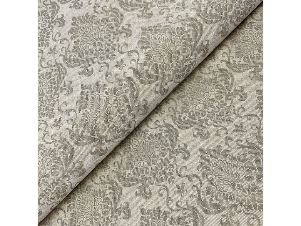 "280cm Dekorační/potahová Gobelínová látka - Barokní Sny Tato gobelínová látka o šířce 280 cm přináší do interiéru nádech barokního luxusu a elegance. Design 'Barokní Sny' se vyznačuje složitými ornamentálními motivy, které zahrnují květinové vzory a dekorativní detaily typické pro barokní styl. Vzor je zobrazen v neutrálních tónech, což zajišťuje jeho univerzálnost a snadné zakomponování do různých stylů interiéru.