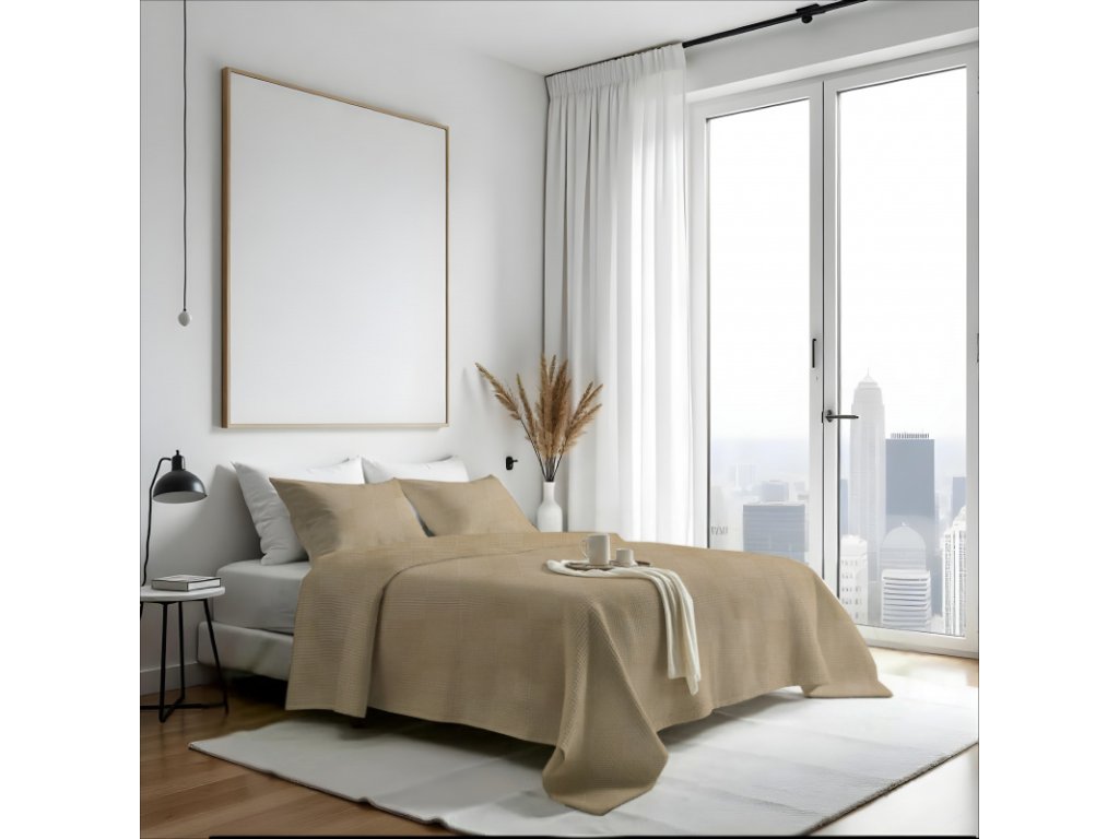 Zútulněte svůj domov s tímto nádherným válečkovým přehozem o gramáži 280 g/m². Vyrobeno z příjemného a lehkého wafflového (vaflového) materiálu, který je nejen měkký na dotek, ale také prodyšný a snadno udržovatelnýTento stylový přehoz na postel ve hnědé barvě dodává ložnici jemný nádech elegance a pohody. Přehoz ladí s moderním, světlým interiérem, vytváří čistý a harmonický vzhled. Ideální volba pro ty, kdo ocení jednoduchost, útulnost a nadčasový design.