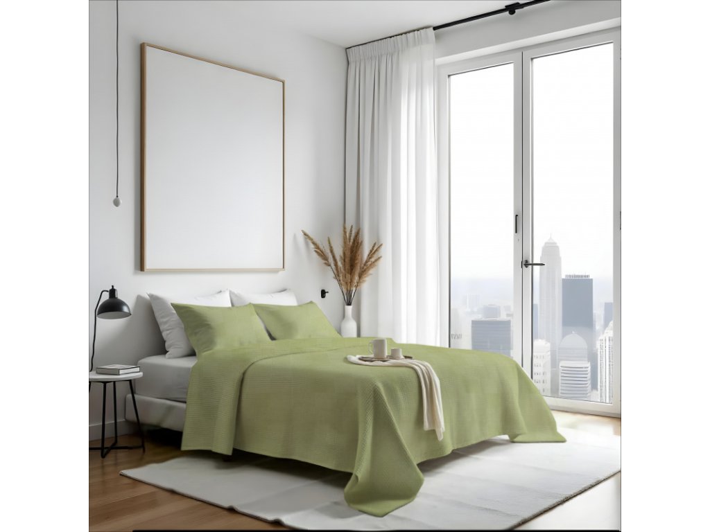 Ervi 100% Bavlněný multifunkční deka-přehoz na postel Waffle - světle olivové