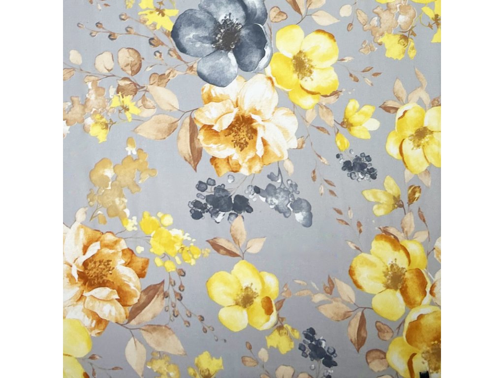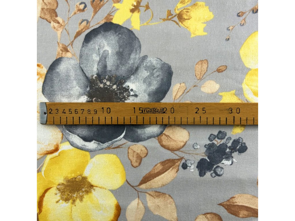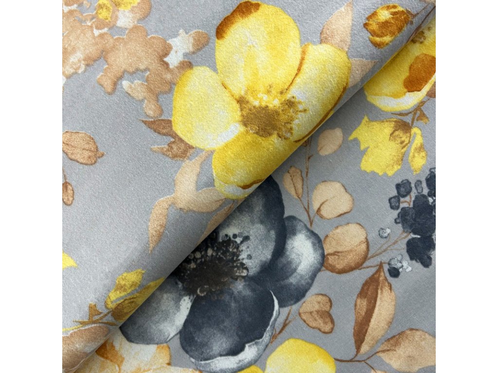 Ervi bavlna flanel š.240 cm žluté květy na šedém-11637, metráž