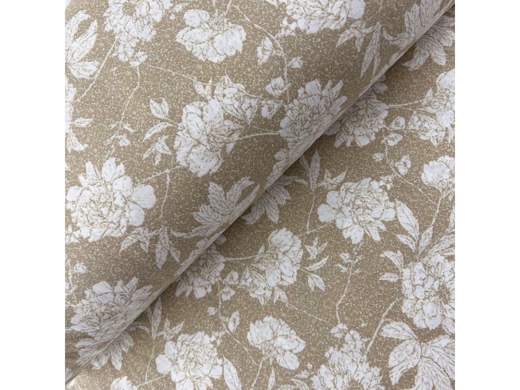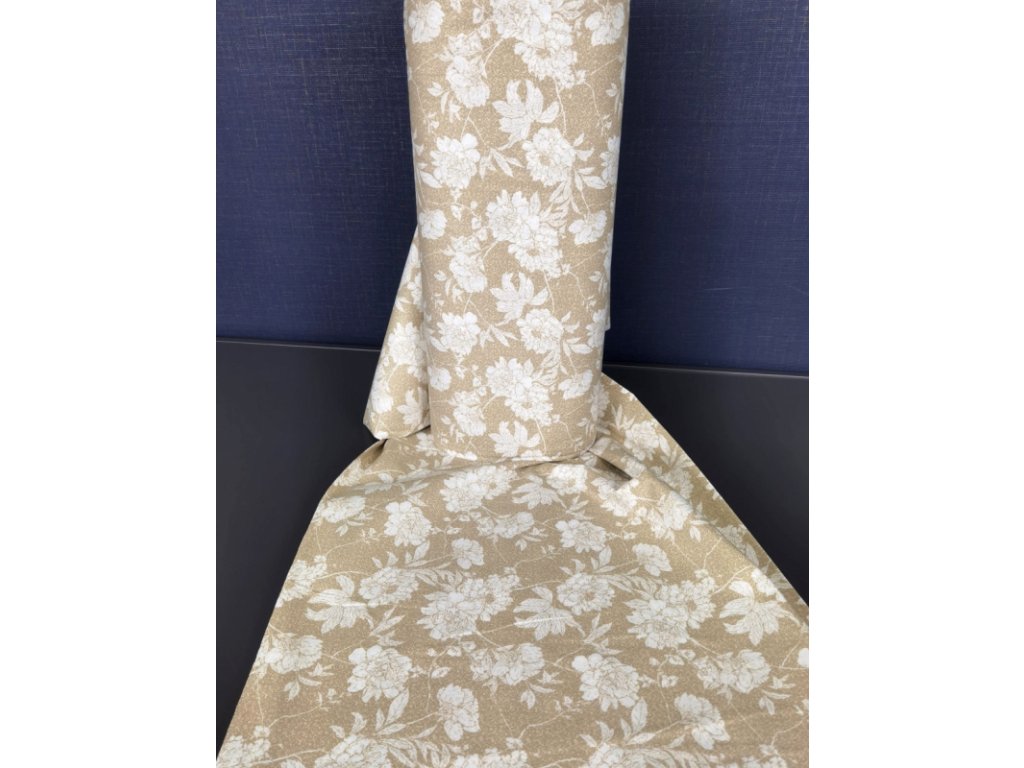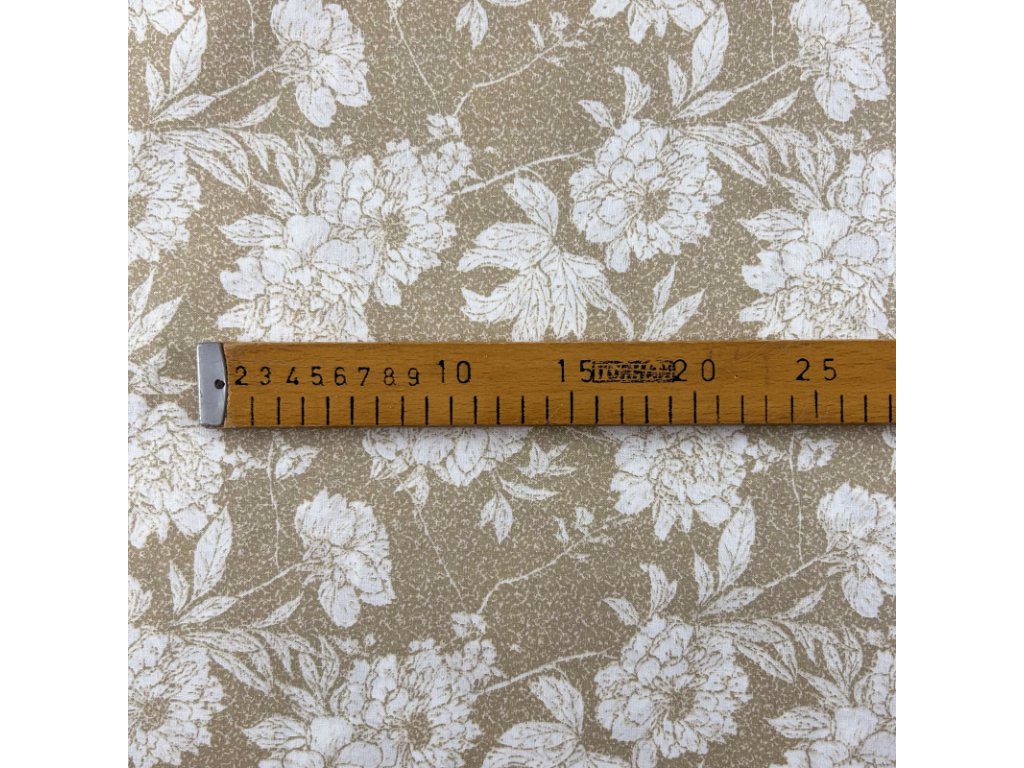 Ervi Bavlněná látka/plátno š.240 cm - bílé květy na hnědém -26726-2, metráž