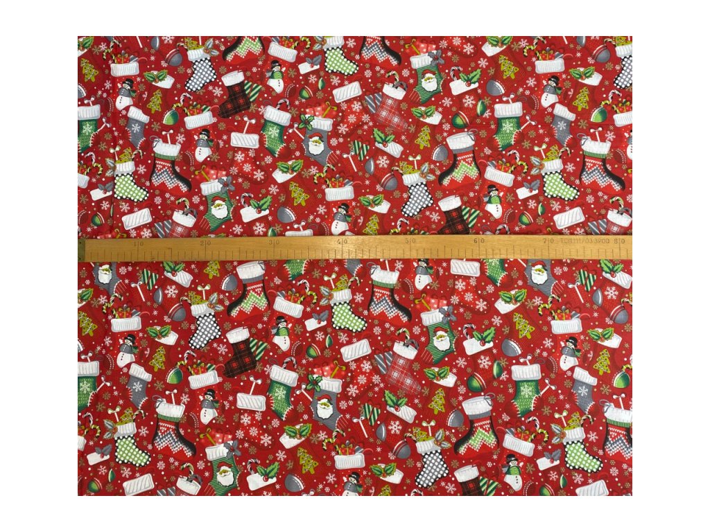 Ervi Bavlněná látka/plátno š.240 cm - Vánoční ponožky červené -12198-9, metráž