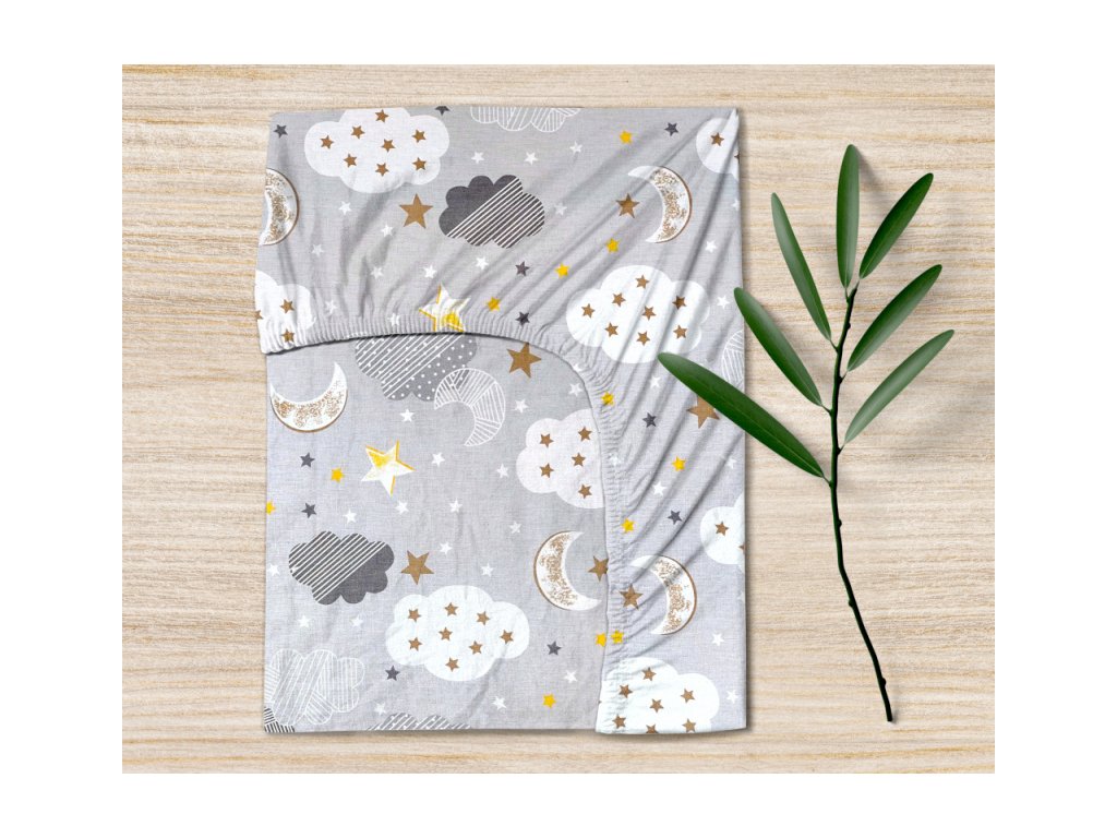 Ervi bavlněné napínací prostěradlo - hvězdy a mračky