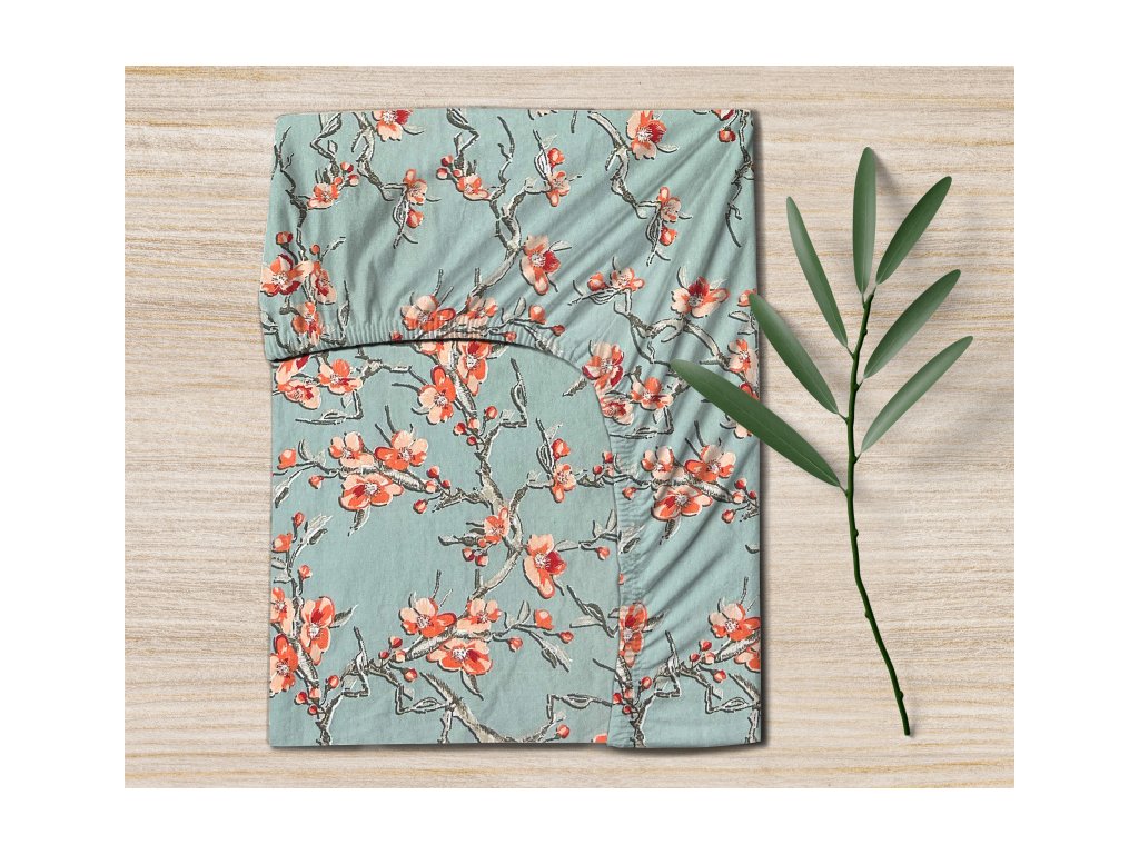 Ervi bavlněné napínací prostěradlo - oranžové květiny