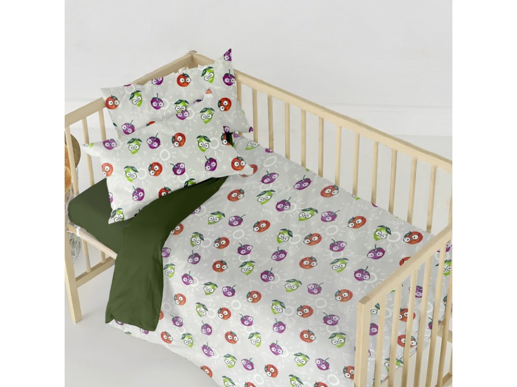 Ervi bavlněné povlečení do postýlky DUO - zábavné ovoce/olivové