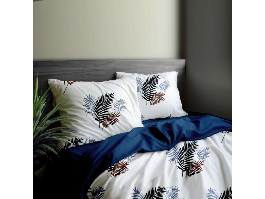 Ervi bavlněné povlečení oboustranné - hnědé a modré palmové listy/modré