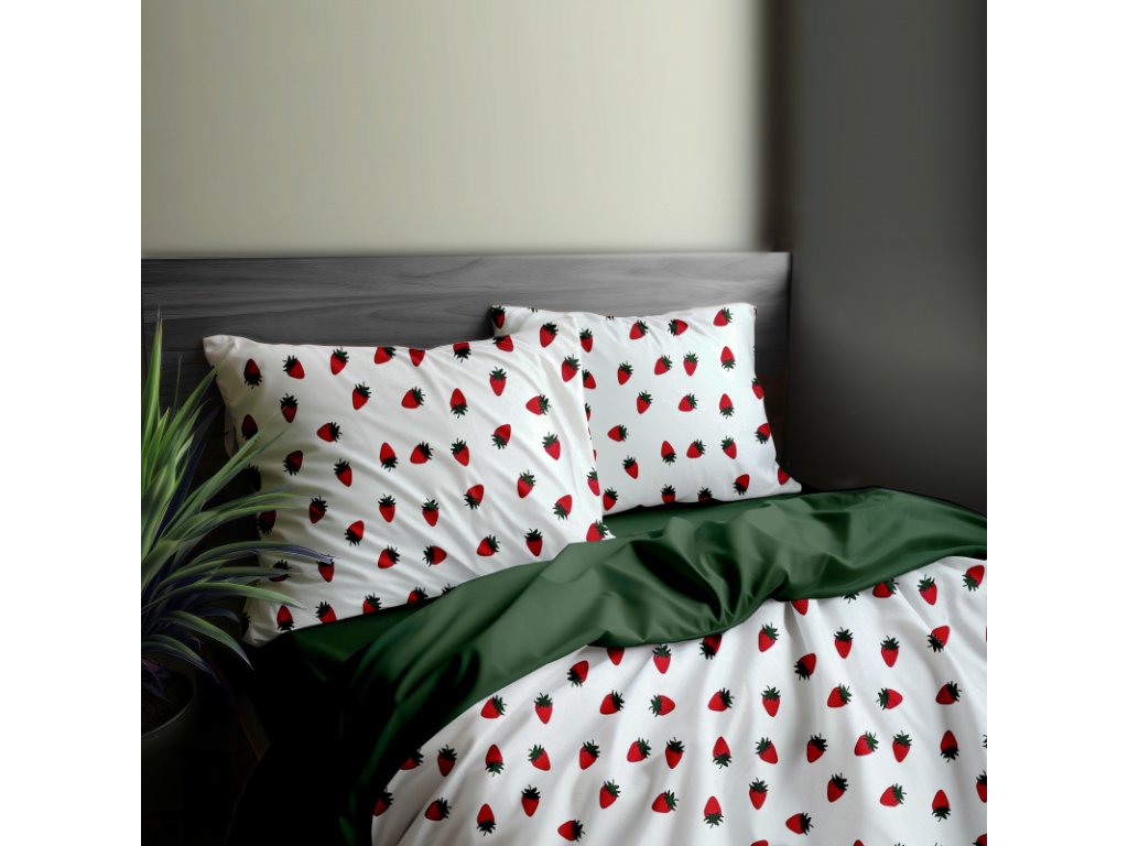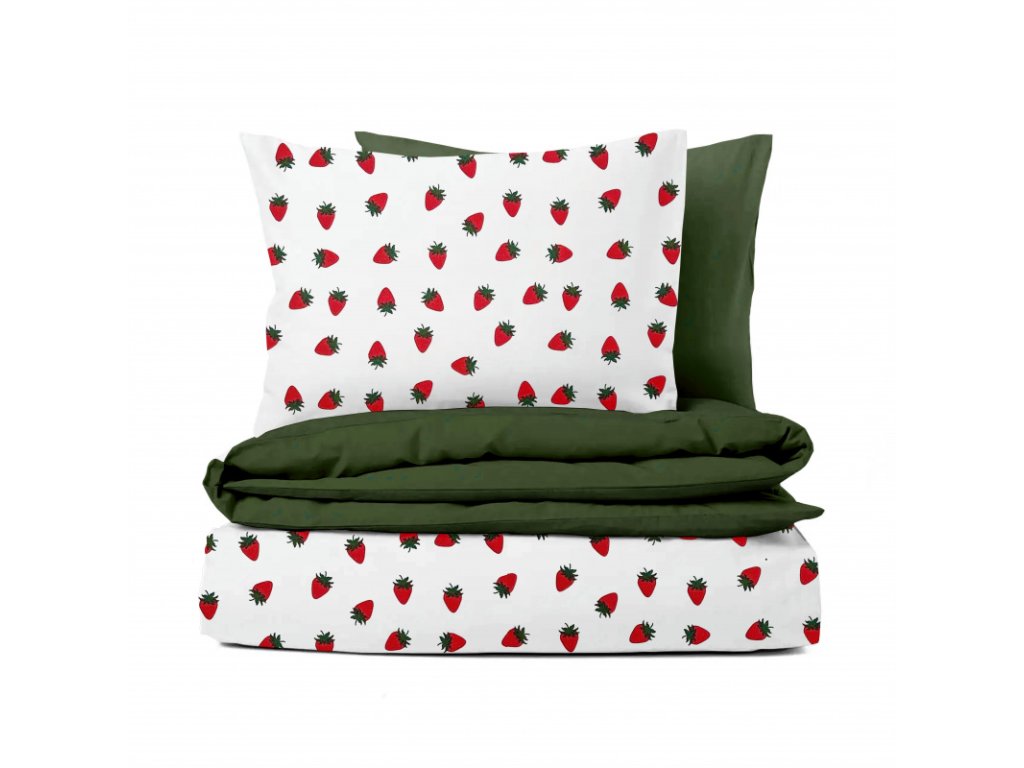 Ervi bavlněné povlečení oboustranné - Jahodové pole/olivové