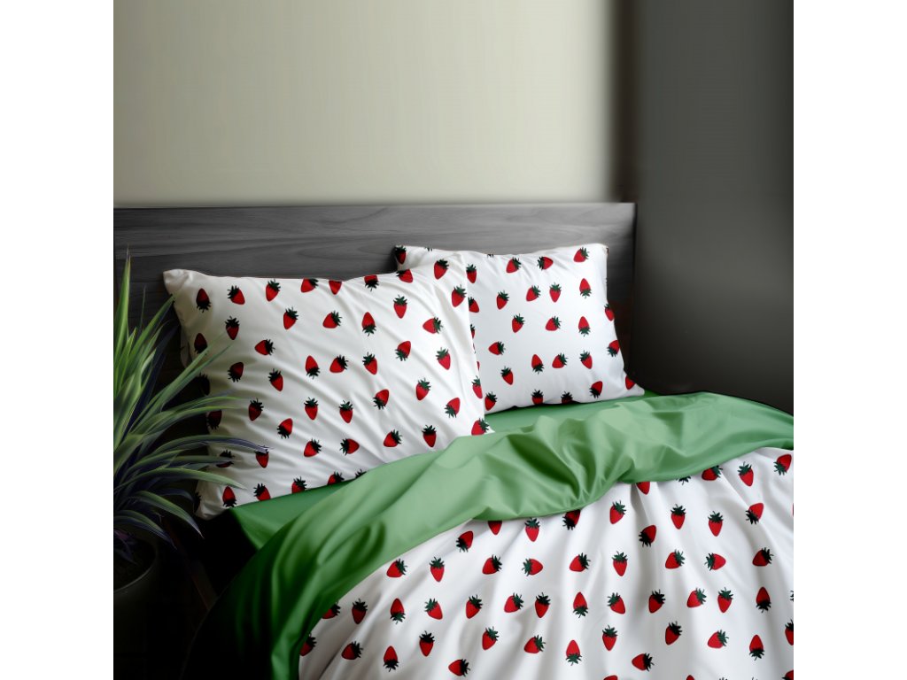 Ervi bavlněné povlečení oboustranné - Jahodové pole/zelené