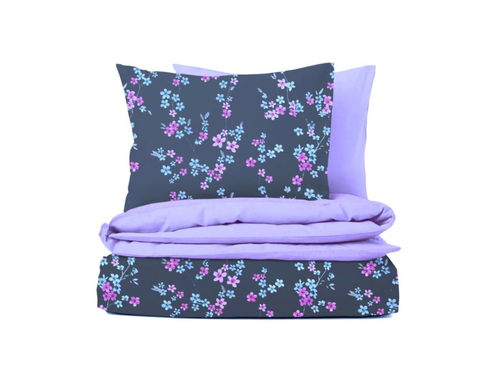 Ervi bavlněné povlečení oboustranné - květ na šedém/fialové