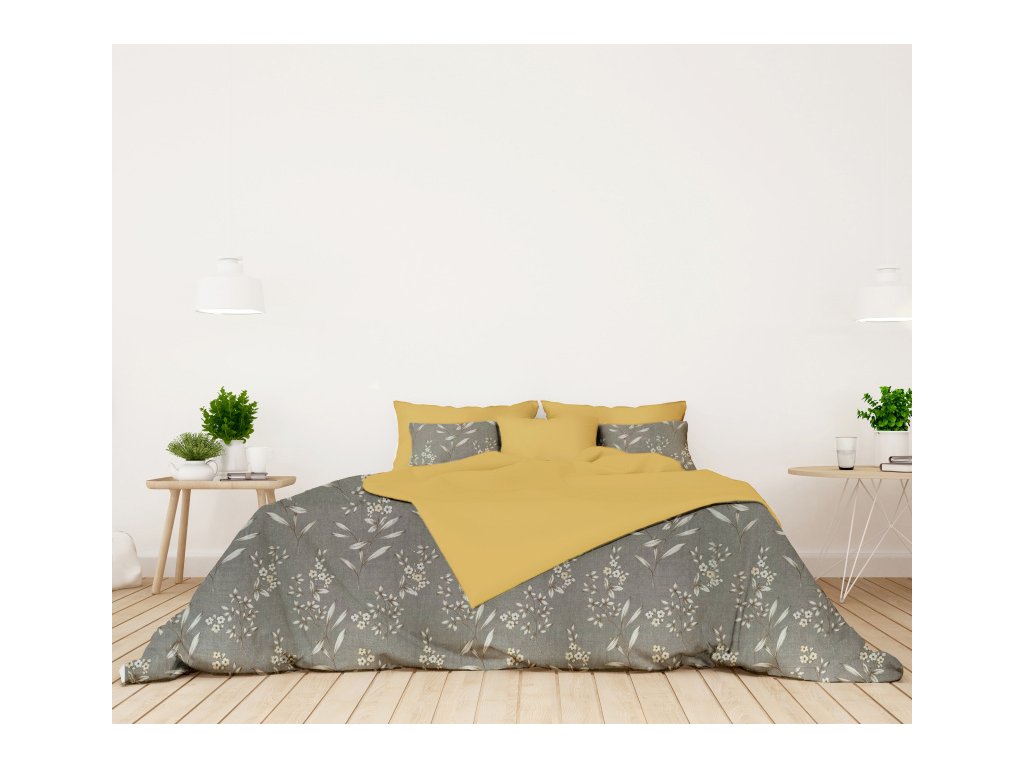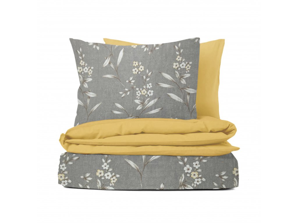 Ervi bavlněné povlečení oboustranné - květinky na šedém/žluté
