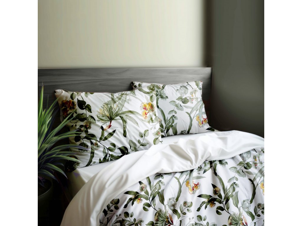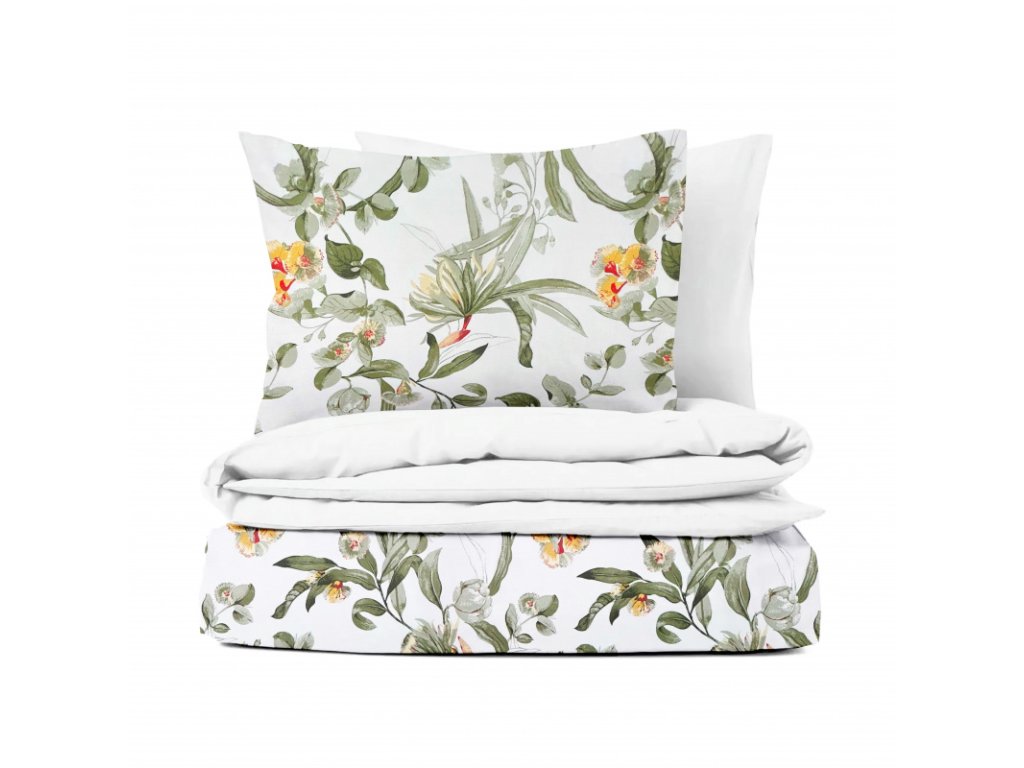 Je vyrobeno ze 100% kvalitní bavlny, která zajišťuje pohodlí a maximální prodyšnost. Zelené a světle bílé tóny povlečení dodávají přírodní nádech a harmonii. S tímto povlečením si užijete klidné a pohodlné noci