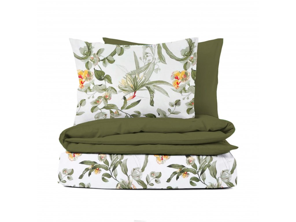 Ervi bavlněné povlečení oboustranné - kvetoucí eukalyptus zelený/olivové
