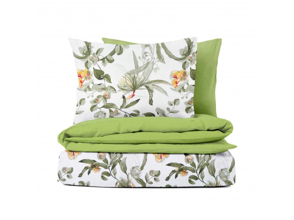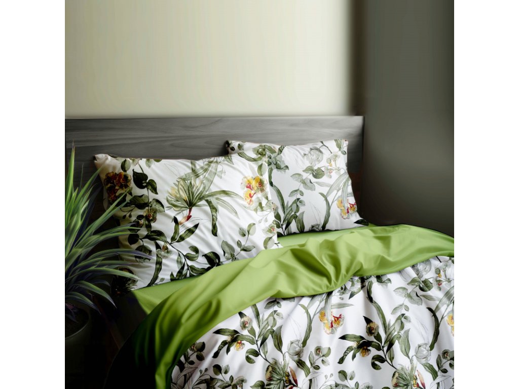 Je vyrobeno ze 100% kvalitní bavlny, která zajišťuje pohodlí a maximální prodyšnost. Zelené a světle olivové tóny povlečení dodávají přírodní nádech a harmonii. S tímto povlečením si užijete klidné a pohodlné noci.