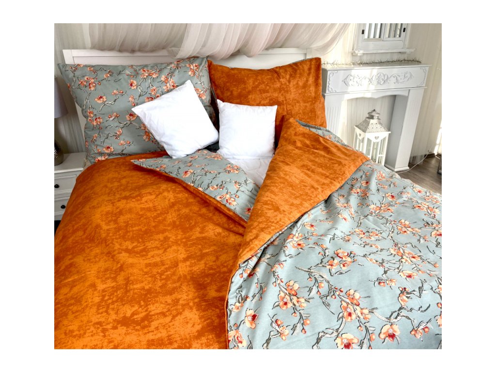 Ervi bavlněné povlečení oboustranné - květy/oranžové