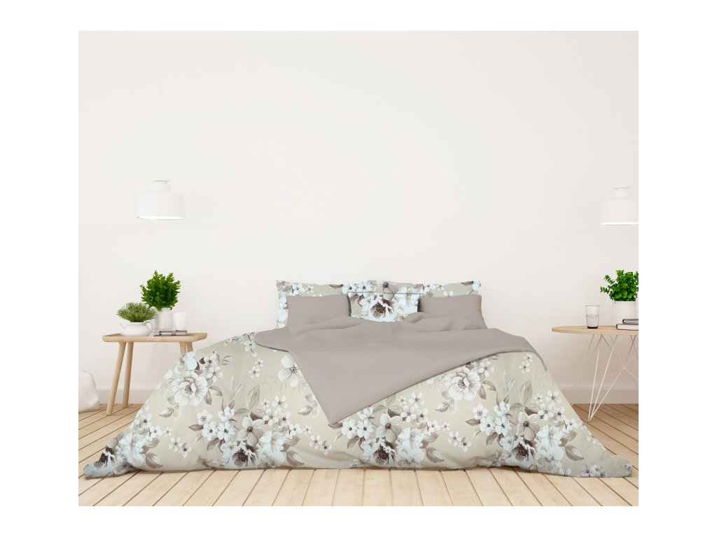 Ervi bavlněné povlečení oboustranné - Malované květy/béžové
