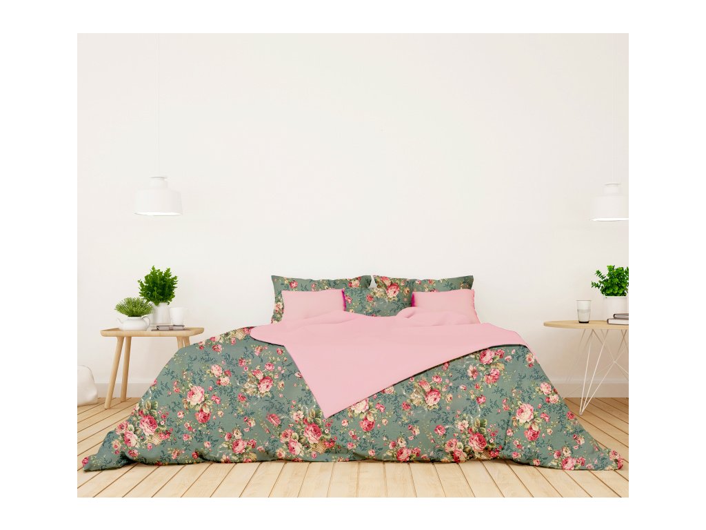 Ervi bavlněné povlečení oboustranné - Růže na zeleném/světle růžová