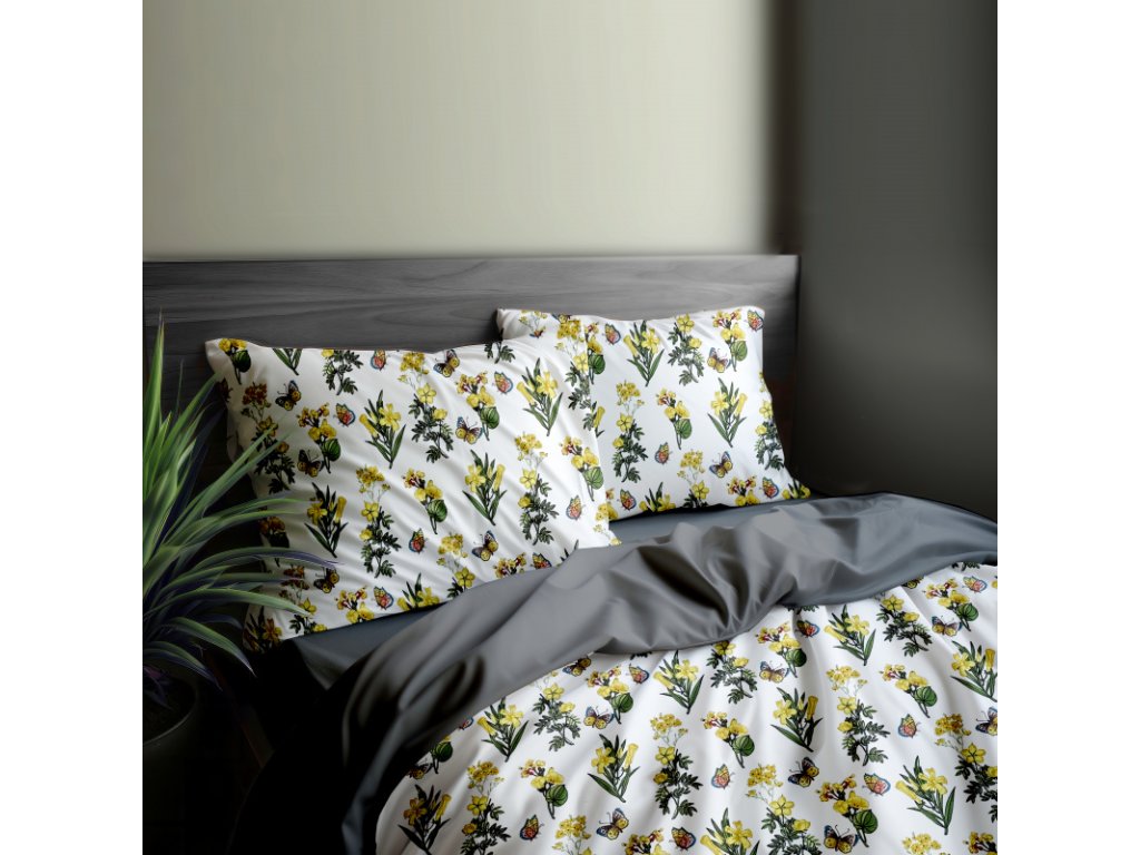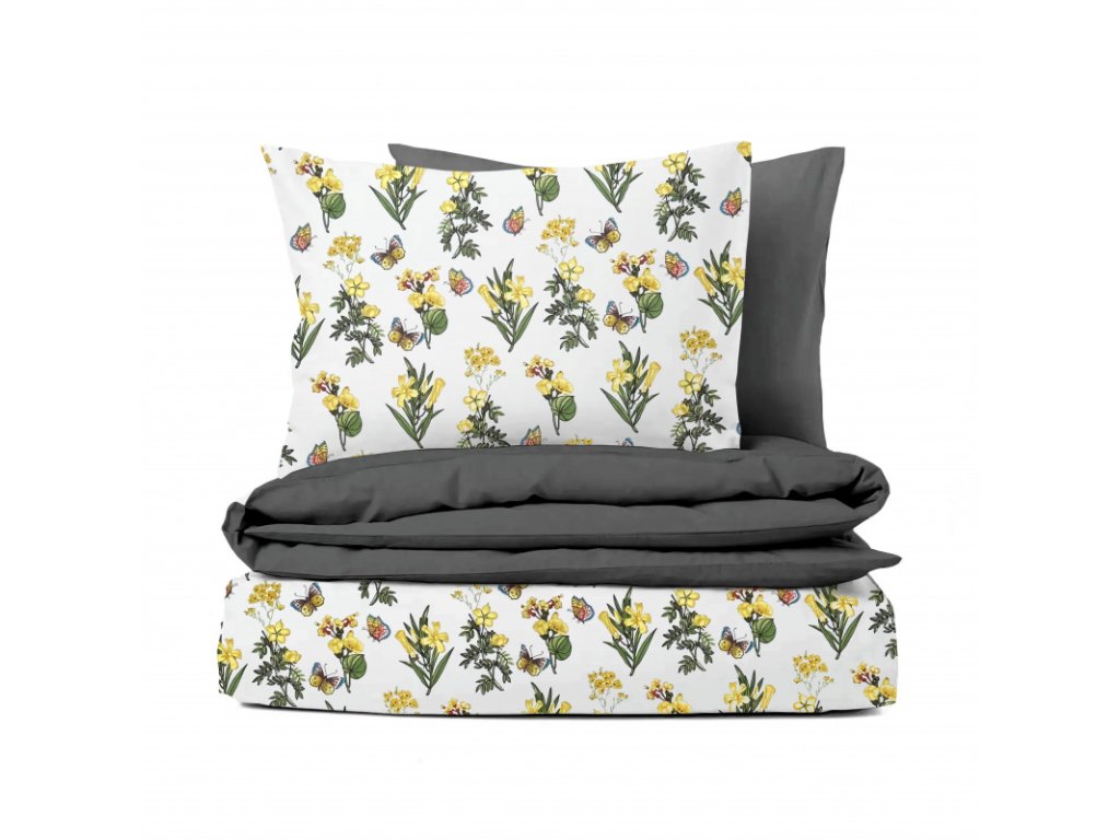 Ervi bavlněné povlečení oboustranné - žluté luční květiny/šedé