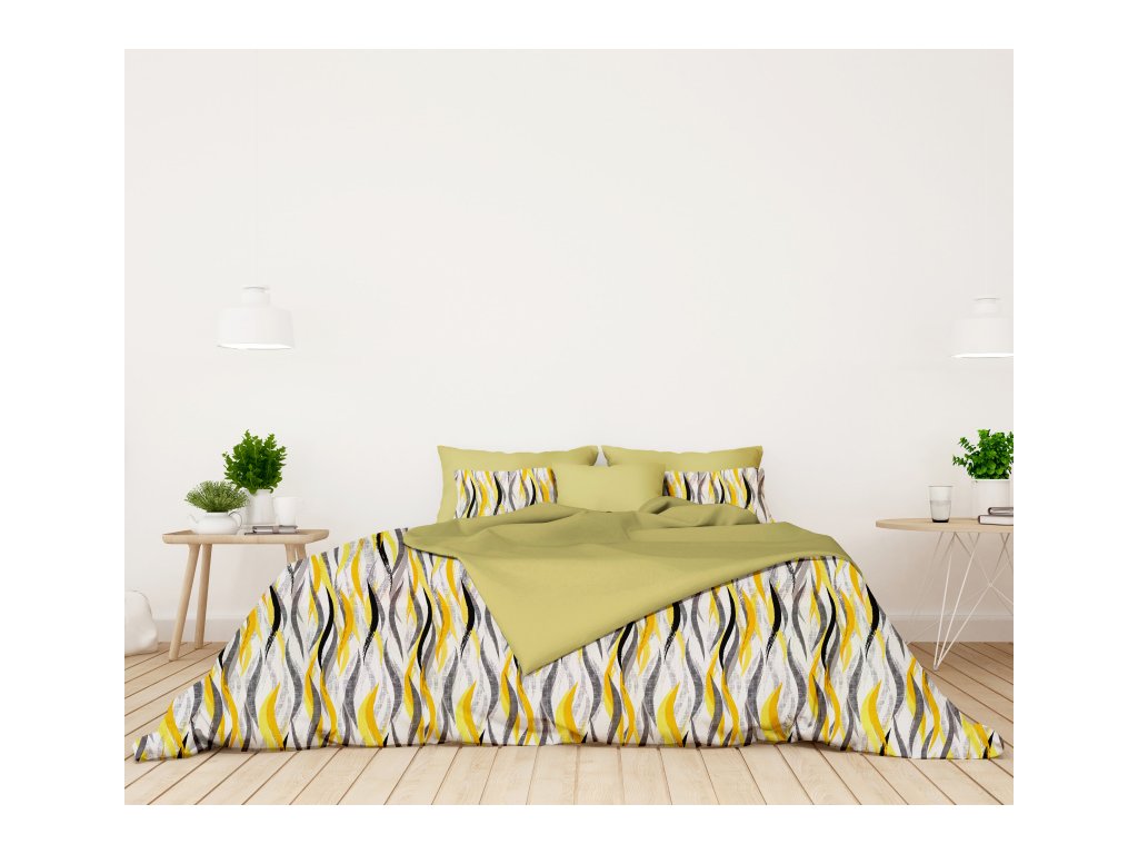 Ervi bavlněné povlečení oboustranné - žluto-šedé vlny/světlé žluté