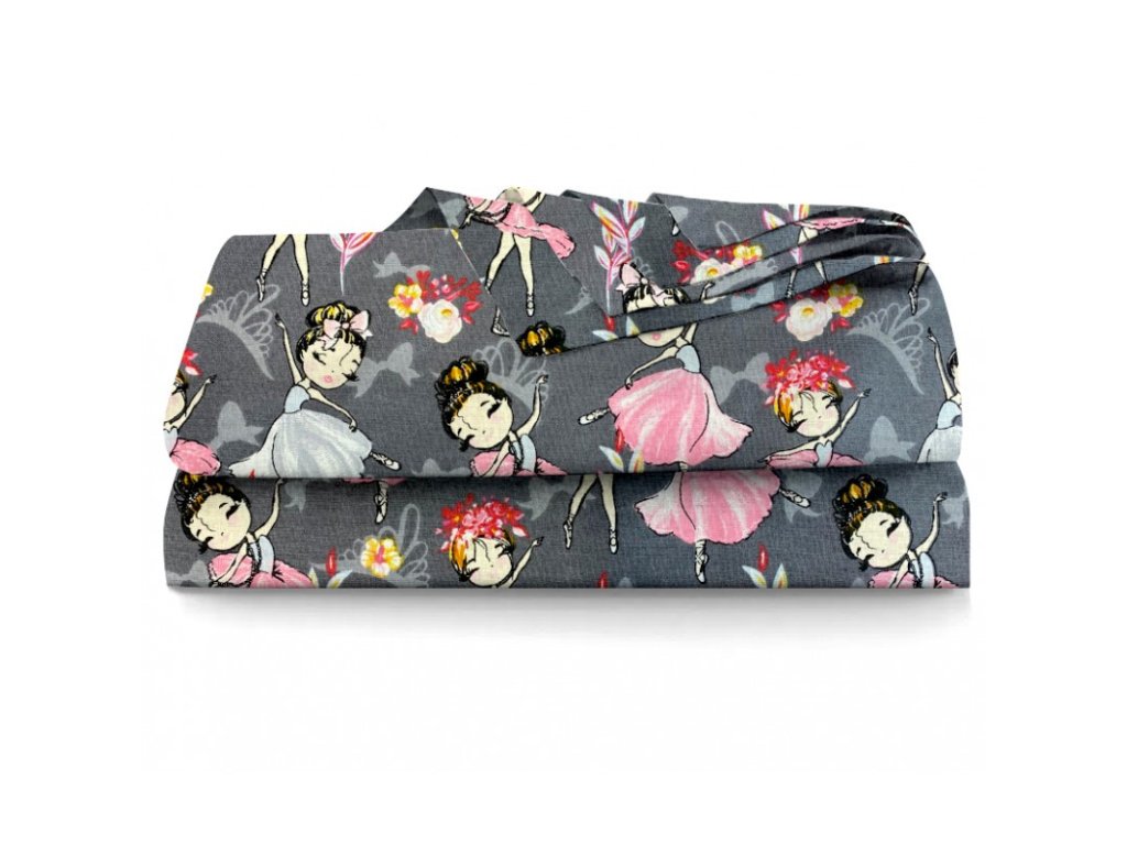 Ervi bavlněné prostěradlo - baleríny na šedém