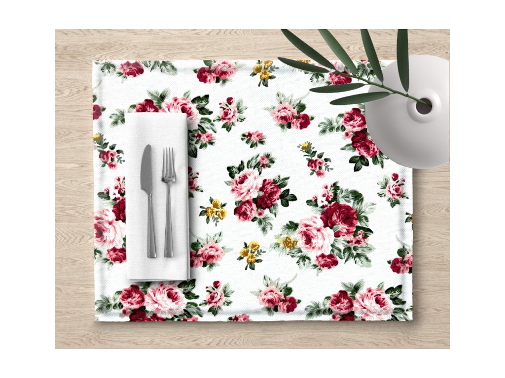 Ervi bavlněné prostírání na stůl - růžičky na bílém