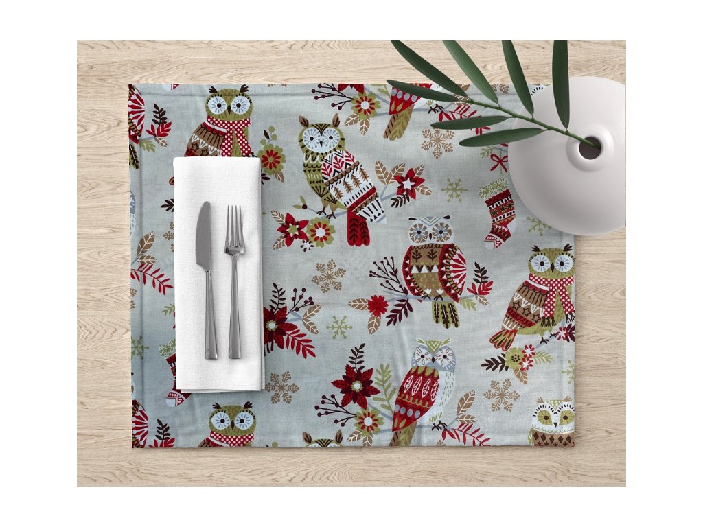 Ervi bavlněné prostírání na stůl - Vánoční vzor - sovičky