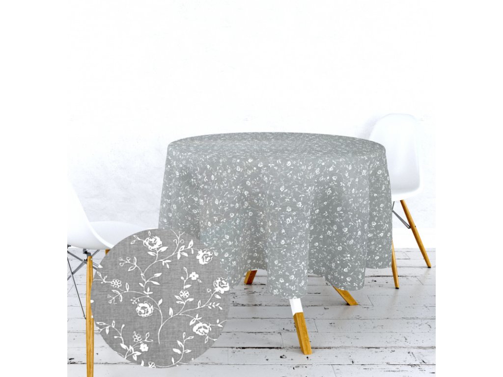 Ervi bavlněný ubrus na stůl kulatý - květiny na šedém