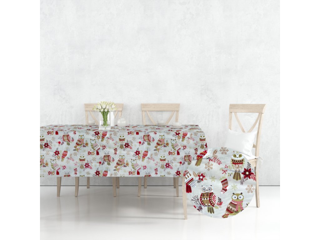 Ervi bavlněný ubrus na stůl obdélníkový - Vánoční vzor - sovičky