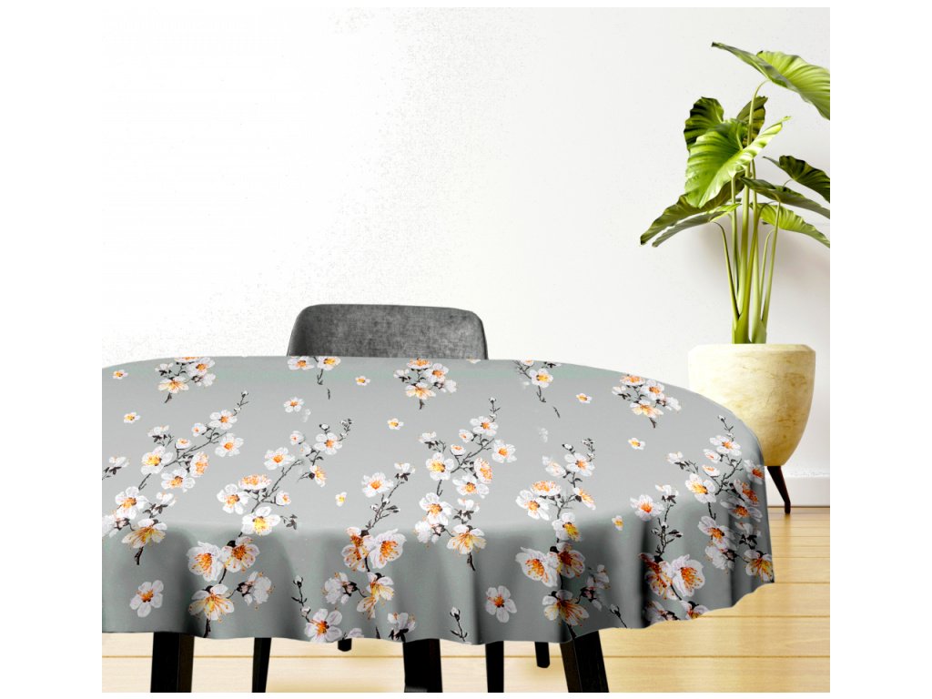 Ervi bavlněný ubrus na stůl oválný - květ jabloně na šedém