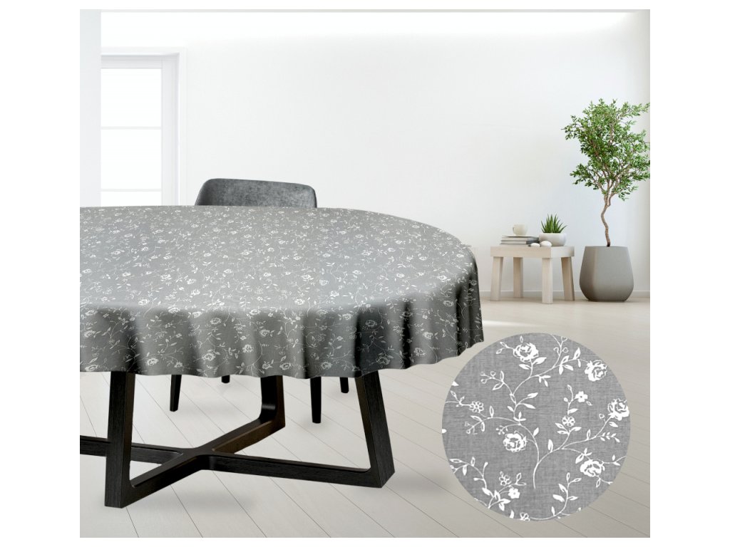 Ervi bavlněný ubrus na stůl oválný - květiny na šedém