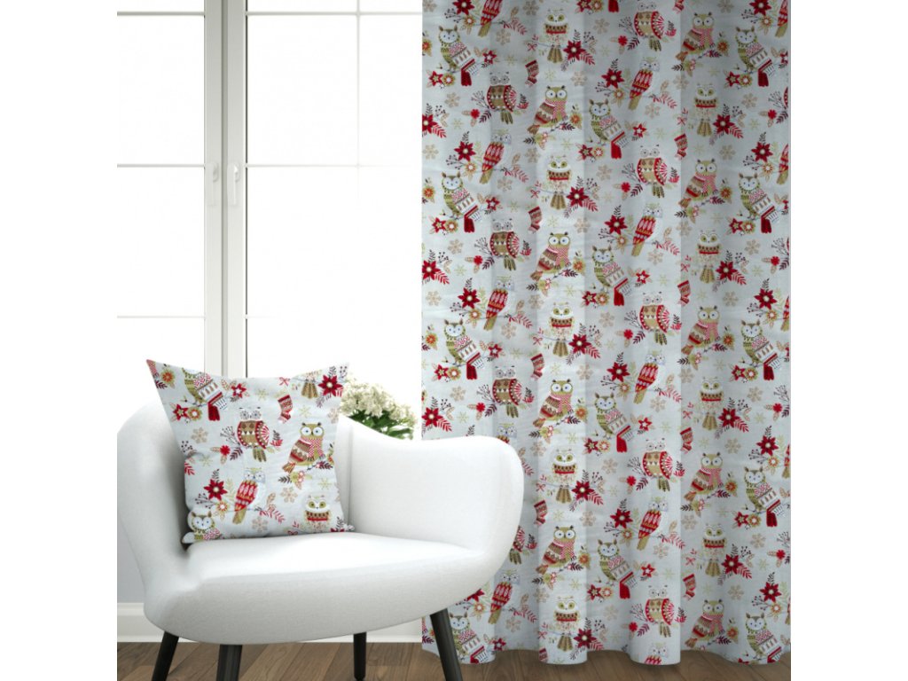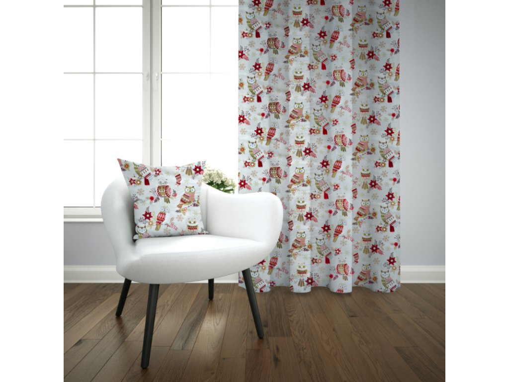 Ervi bavlněný závěs - Vánoční vzor - sovičky