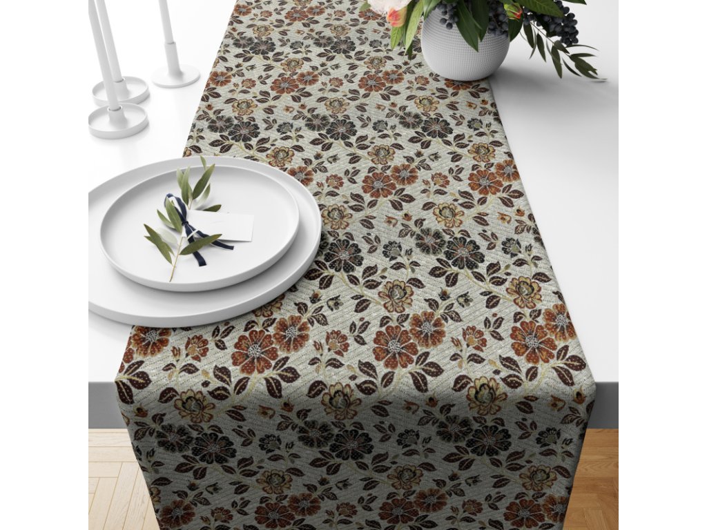 Jeho design je inspirován bohatými květinovými vzory v teplých odstínech hnědé, oranžové a černé, které dodávají interiéru sofistikovaný a nadčasový vzhled. Díky propracovaným detailům a preciznímu zpracování působí běhoun luxusně a hodí se jak pro slavnostní příležitosti, tak pro každodenní použití.