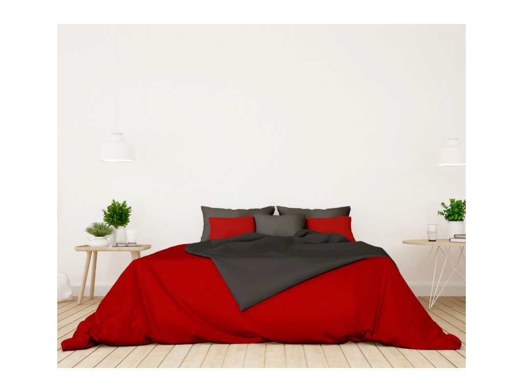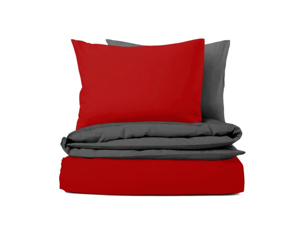 Povlečení Červené/Šedé je výraznou kombinací energie a klidu. Z jedné strany září sytou červenou barvou, která dodává ložnici vášeň, teplo a živost, z druhé strany působí šedá jako vyrovnaný protipól – decentní, elegantní a harmonická. Oboustranné provedení umožňuje snadnou proměnu atmosféry podle nálady – od dramatického výrazu po jemnou rovnováhu.