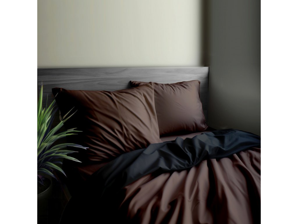 Ervi Luxsusní saténové oboustranné bavlněné povlečení hnědé/černé