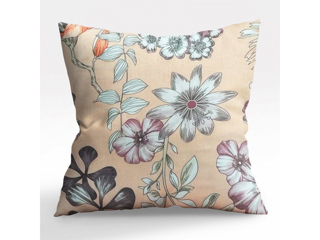 Ervi povlak na polštář bavlněný - Květy na béžovém