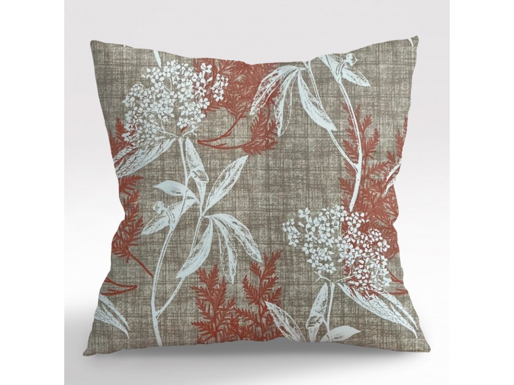 Ervi povlak na polštář Bavlněný - oranžové a bílé listy na hnědém