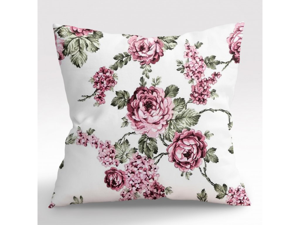 Ervi povlak na polštář bavlněný - růžové květy na bílém
