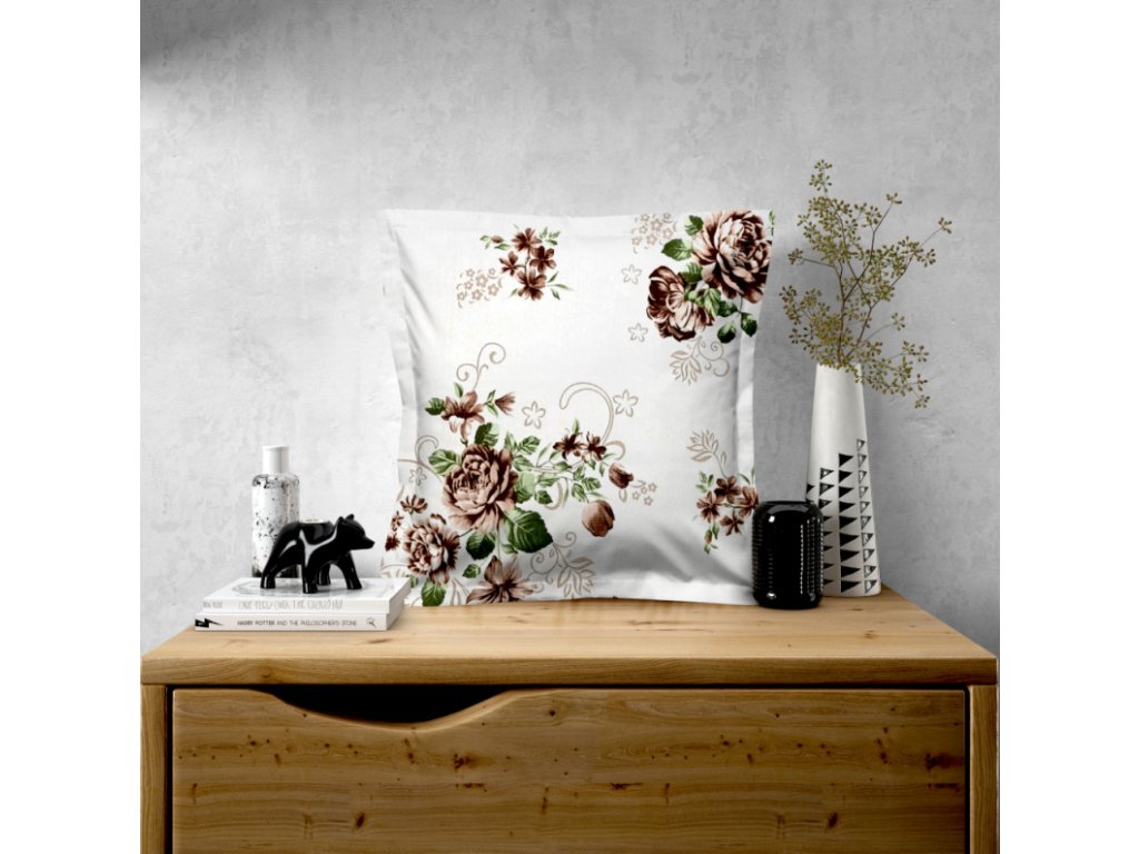 Ervi povlak na polštář bavlněný s lemem - hnědé růže