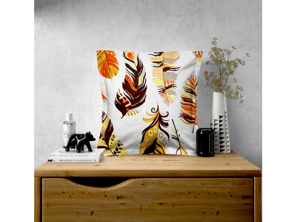 Ervi povlak na polštář bavlněný s lemem - oranžové peří