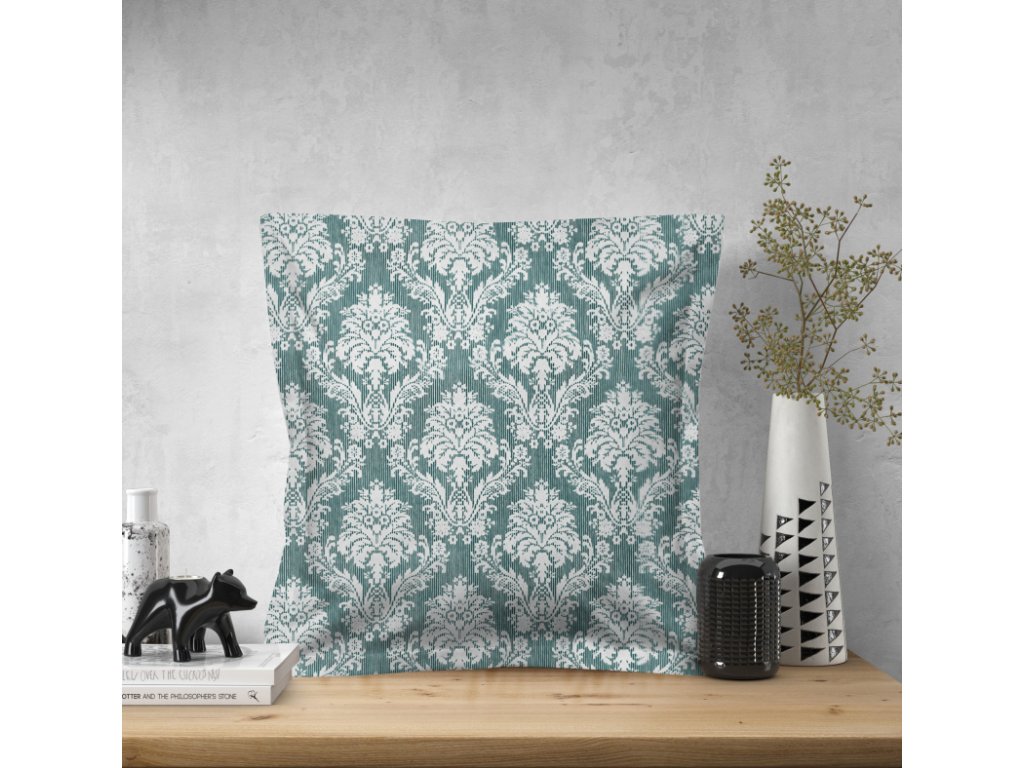 Ervi povlak na polštář bavlněný s lemem - ornament tyrkysový