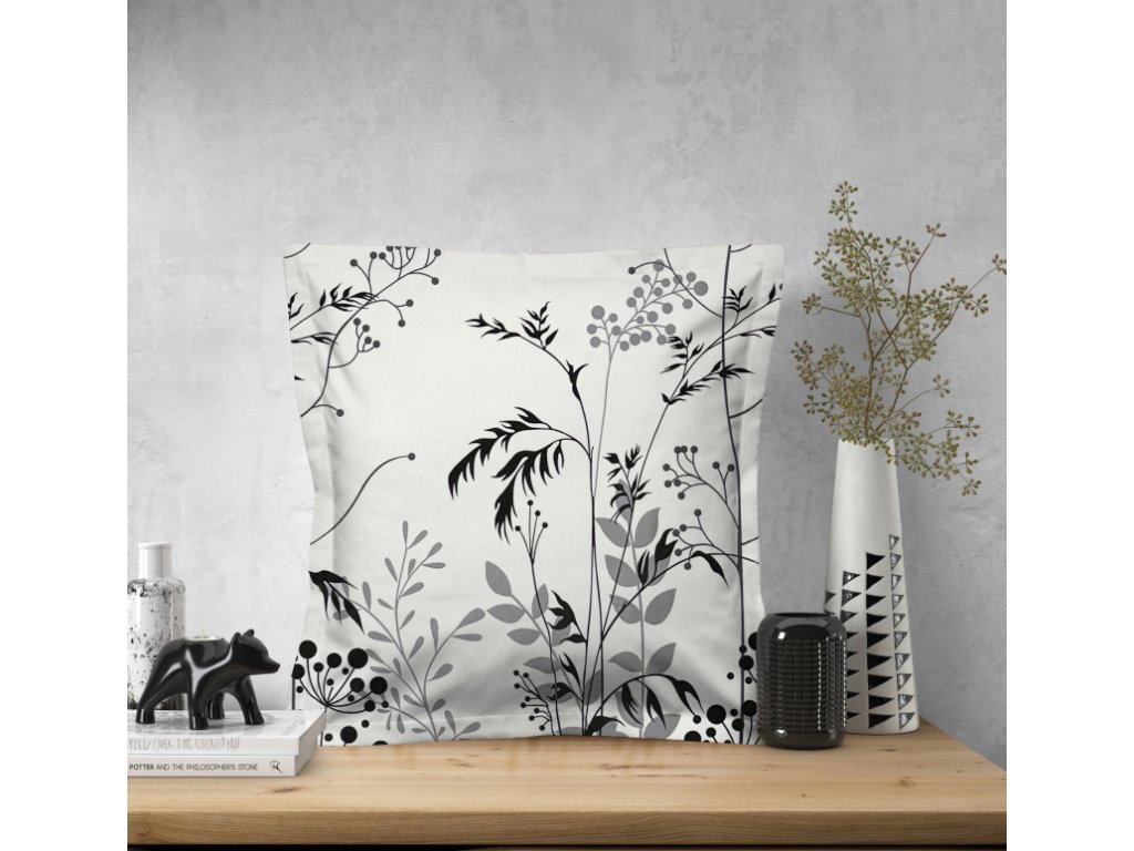 Ervi povlak na polštář bavlněný s lemem - rostliny na bílém