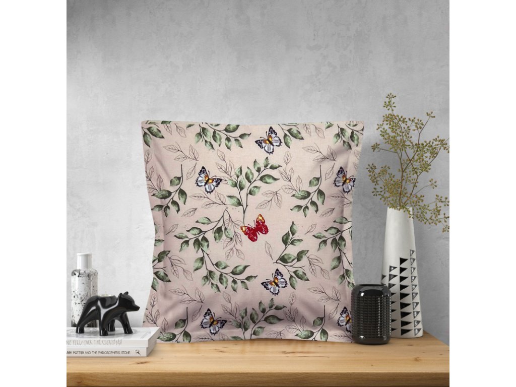 Ervi povlak na polštář bavlněný s lemem - Větvičky a motýli