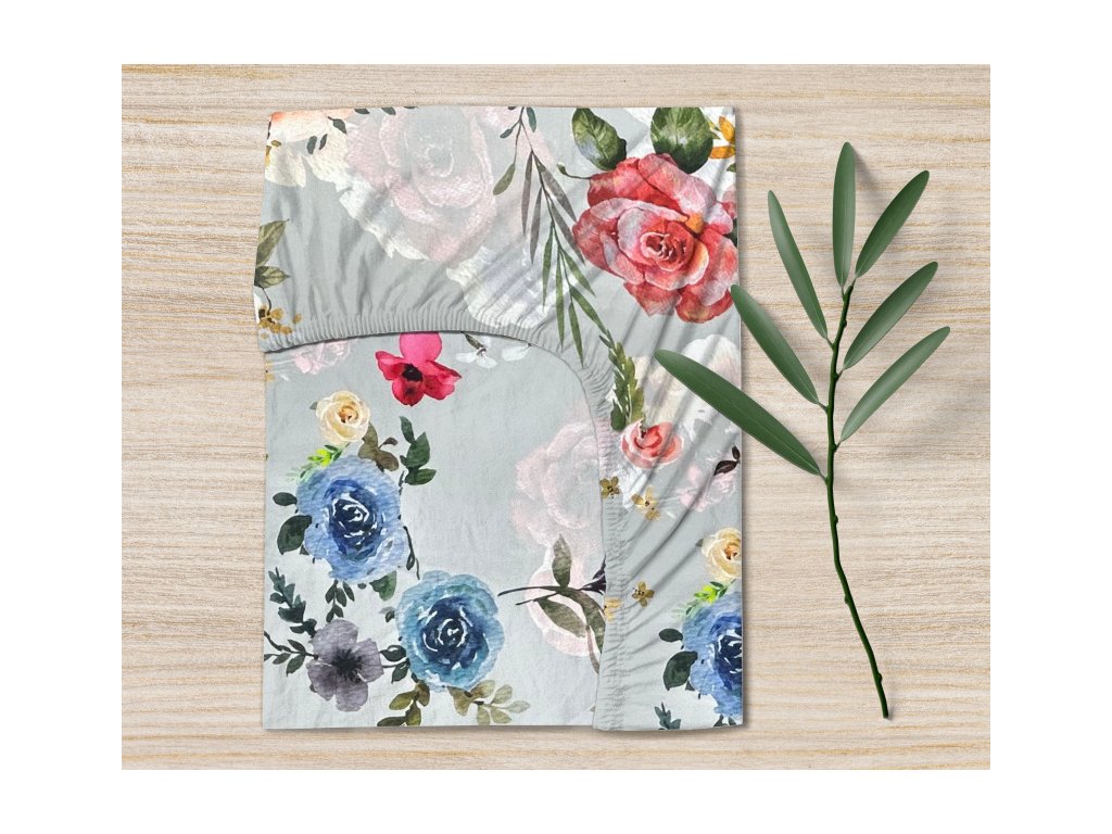 Ervi Saténové napínací prostěradlo - Barevné květy na šedém