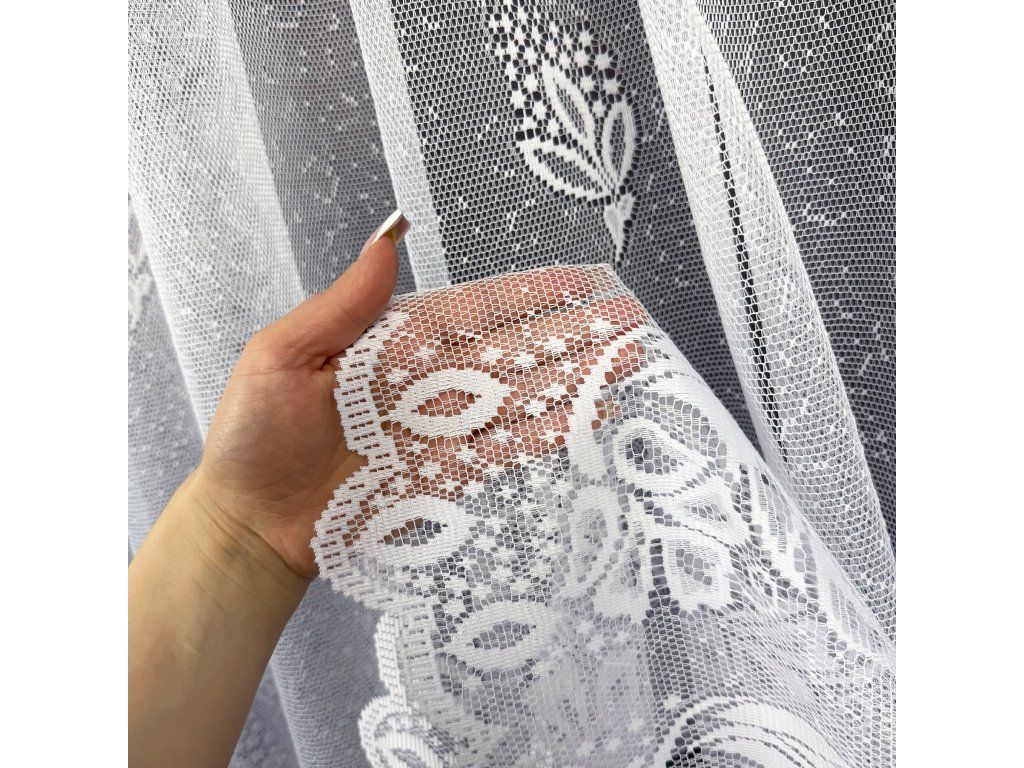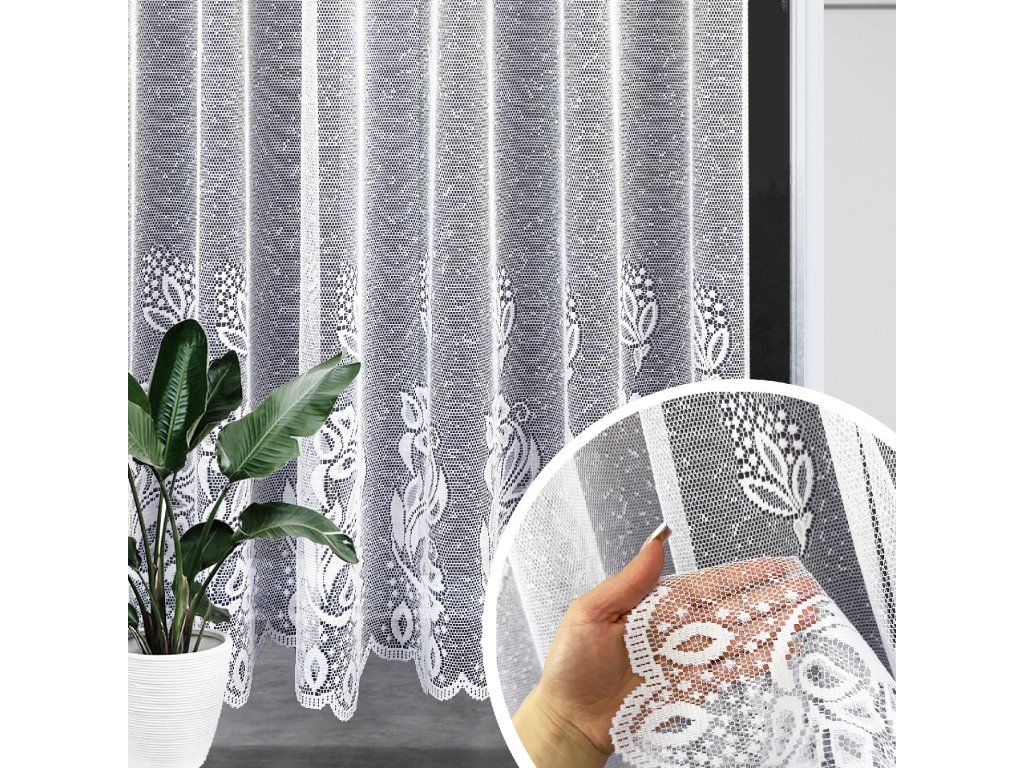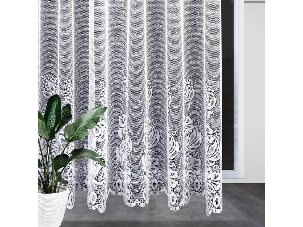 Ervi žakárová záclona v bílé barvě se vzorem.