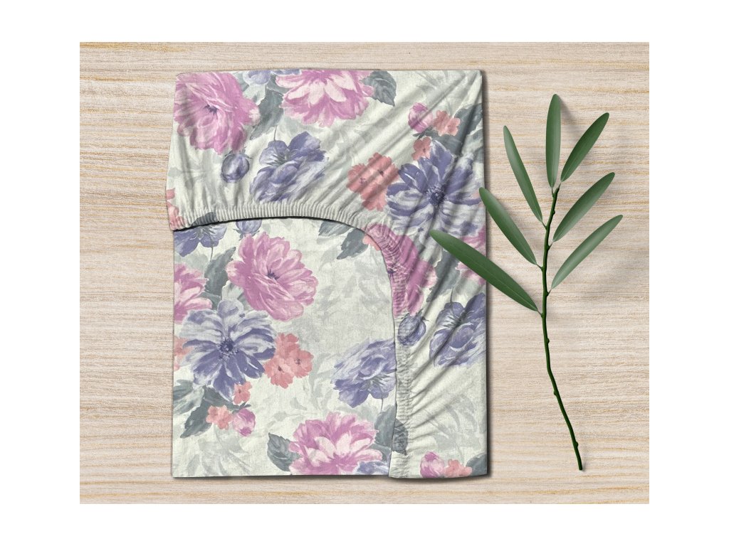#Ervi bavlnené napínacie prestieradlo - fialové a modré pivonky