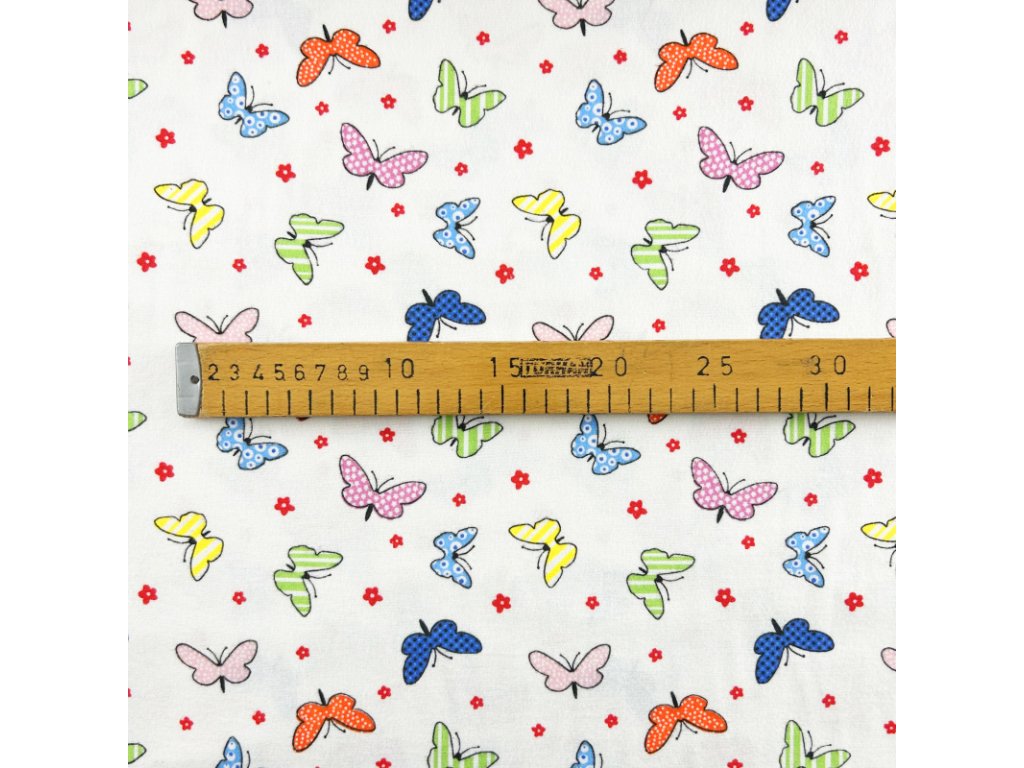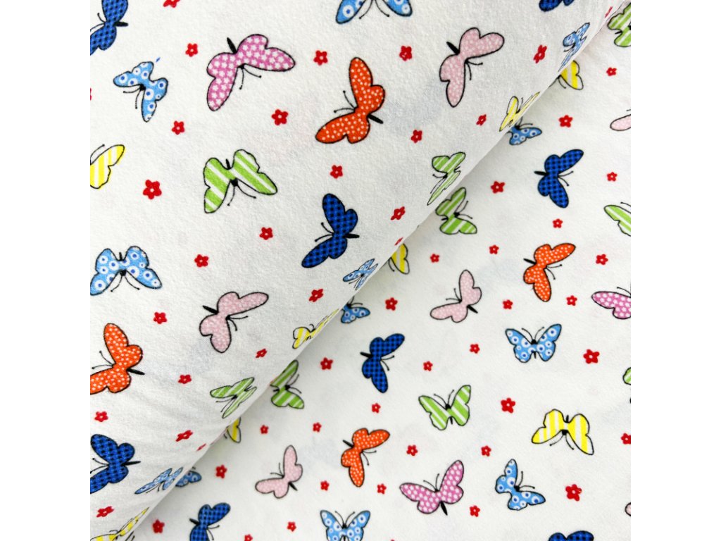 Ervi bavlna flanel š.240cm farebné motýliky na bielom -9336-01, metráž
