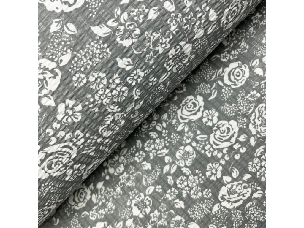 Ervi bavlnená KREPOVÁ obliečka na vankúš - Kvety na šedom