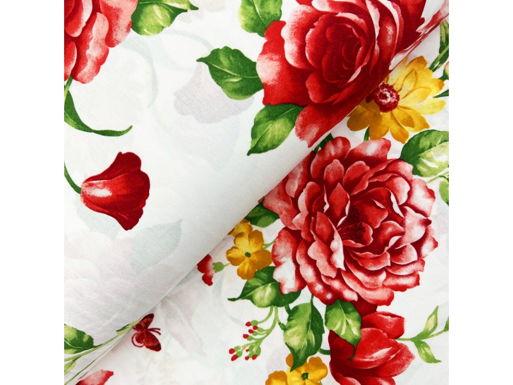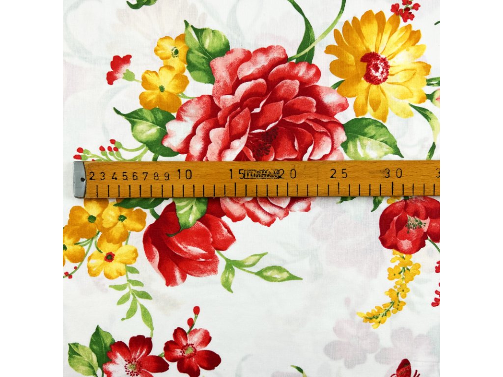 Ervi Bavlnená látka/plátno š.240cm - Červené a žlté kvety č.26560-5, metrážDodatočné parametre