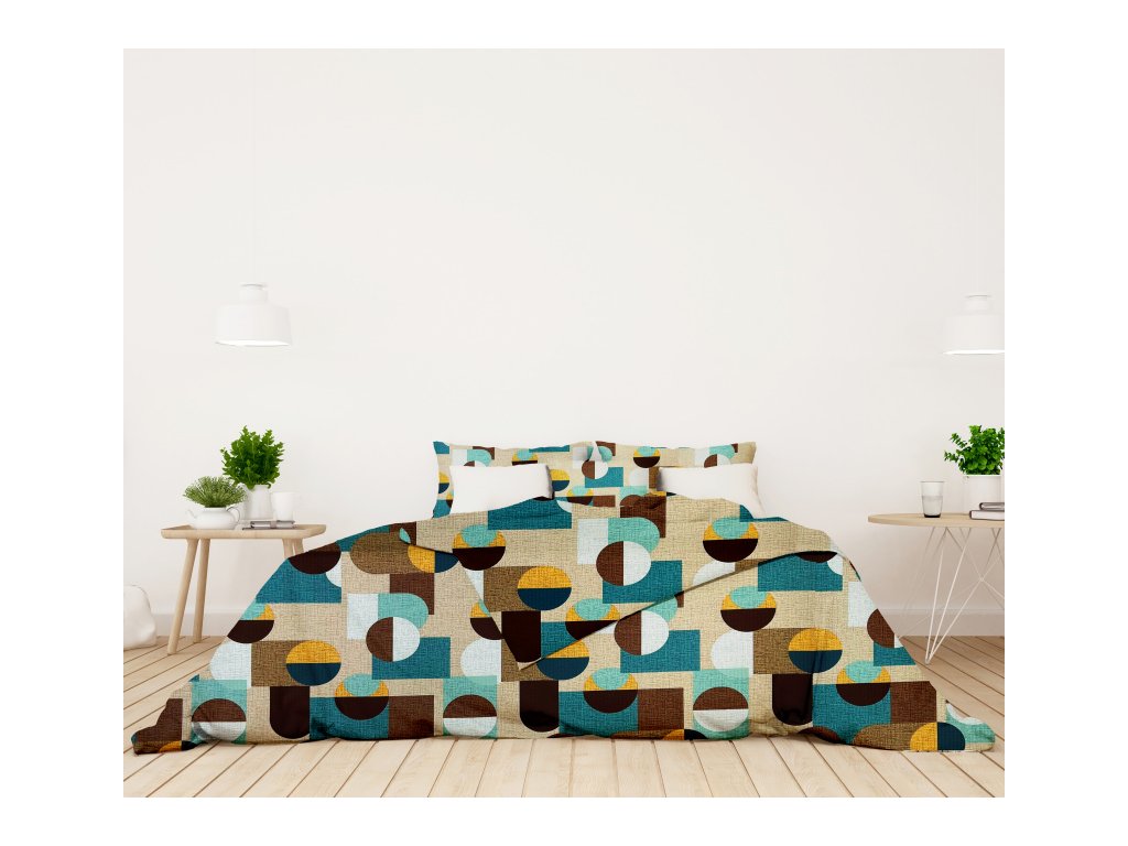 Ervi bavlnené KREPOVÉ obliečky - geometrické obrazce tyrkysové/žlté