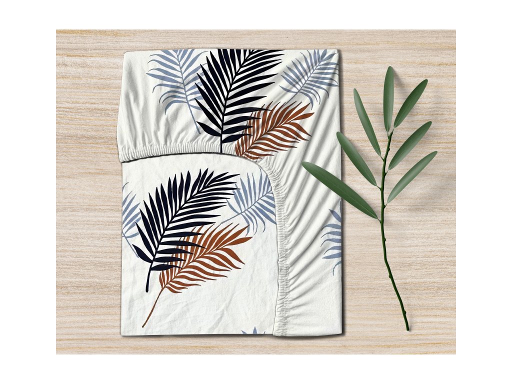 Ervi bavlnené obliečky DUO - hnedé a modré palmové listy/biele